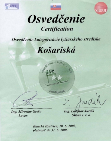 Cenník Lyžiarsky vlek "Košariská" v Závadke nad Hronom